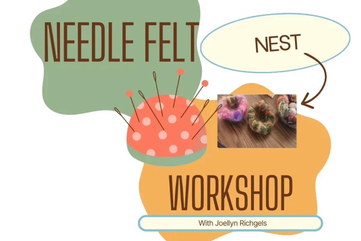 Craft your own one-of-a-kind wool nest in this beginner-friendly needle felting workshop led by artist Joellyn Richgels. Using a variety of natural wools, colors, and textures, you'll learn the basics of needle felting while creating a beautiful, nature-inspired piece to take home. With over 10 years of felting experience, Joellyn specializes in whimsical 3D creations, nests, birds, gnomes, and more. All materials are included in your registration fee. Your kit will contain written directions, two felting needles, wool for a 4-inch nest, colorful curly wool, wool for three eggs, and three feathers. Joellyn will also provide extra needles, a felting pad, felt ball, and additional decorations. Space is limited. Please register by March 26.