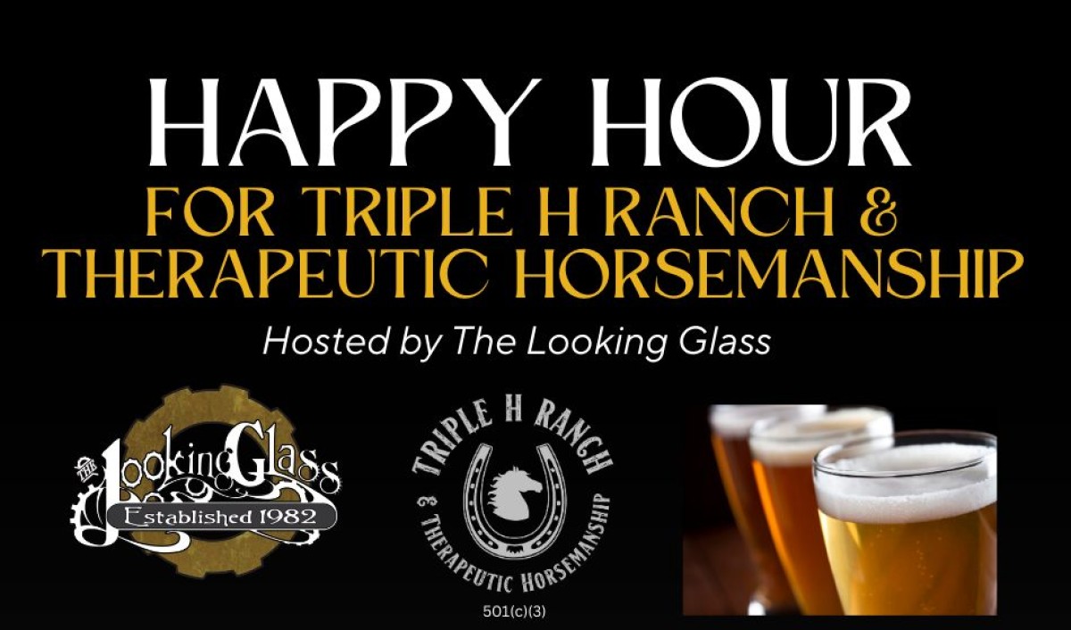 Triple H Ranch & Therapeutic Horsemanship is the beneficiary of Looking Glass's Charity Tap Line for the month of March. 15% of all food and beverage sales from 5 PM - 8 PM, and the proceeds from the Looking Glass's Charity Tap Line will benefit Triple H Ranch. There will also be a raffle for a chance to win a $50 gift card to the Looking Glass (drawing is at 8 PM; must be present to win).